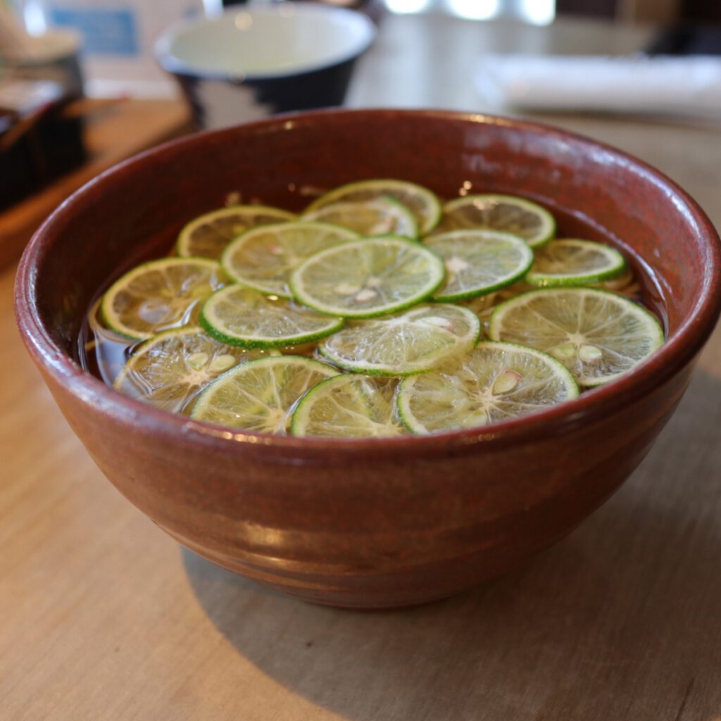 ひきたて、うちたて、ゆがきたて。三たての十割蕎麦を、味わってください。