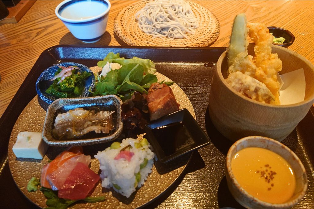 天ぷら/サラダ/豚の角煮/蕎麦豆腐/季節の小鉢/お刺身/デザート/お蕎麦*珈琲プラス料金